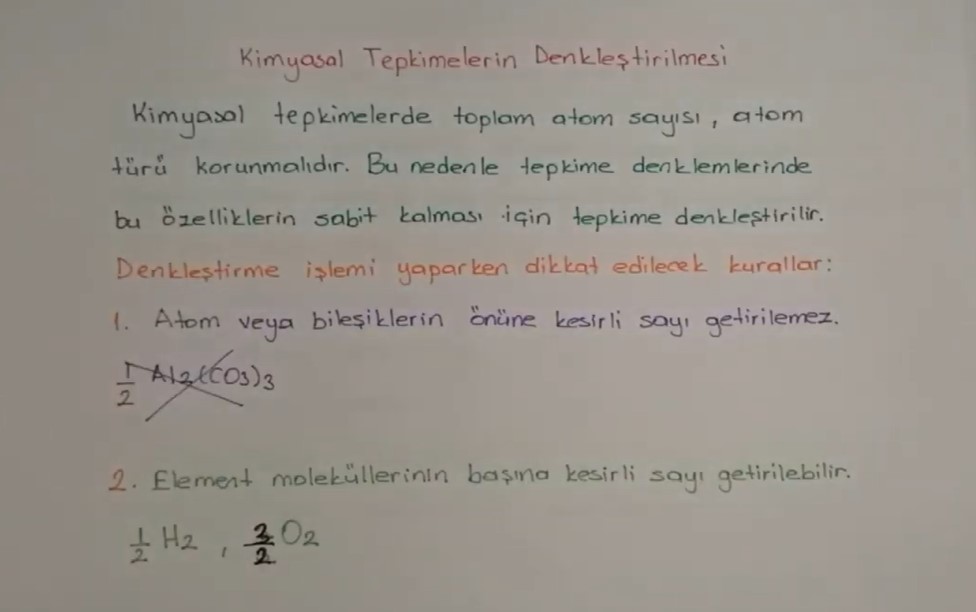 Konu anlatımı ve örnek denkleştirmelerin ayrıntılı anlatımını aşağıdaki videoda bulabilirsiniz.